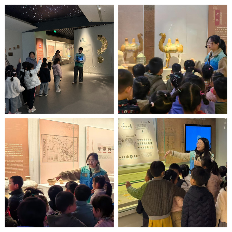 博物馆新上岗讲解员化身“文化向导”,针对幼儿的认知特点,用通俗易懂的语言、生动形象的比喻,带领孩子们探秘馆藏珍品。从新石器马家窑文化的造型,到各类瓷器上丰富多彩的纹饰,再到青铜器上充满想象的纹样,以及传统书画的笔墨意境,讲解员通过提问互动、实物观察等方式,引导孩子们用眼睛去发现每一个细节、用心灵去感受深厚的历史文化。
