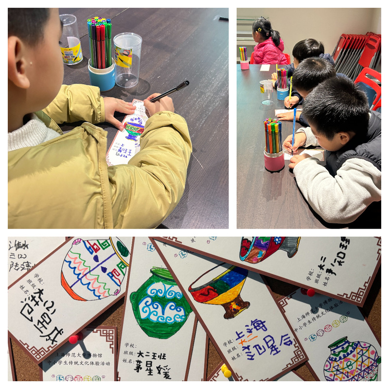 在专题导览结束后,校博物馆为孩子们准备了“巧手画书签”特色品牌活动,鼓励大家将参观中的所见所感融入到定制书签的创作中。孩子们充分发挥想象力,或是用五颜六色的彩笔描绘着博物馆里印象深刻的展品,或是用充满童趣和想象力的创意进行创作,一张张独一无二的创意书签不断跃然纸上。